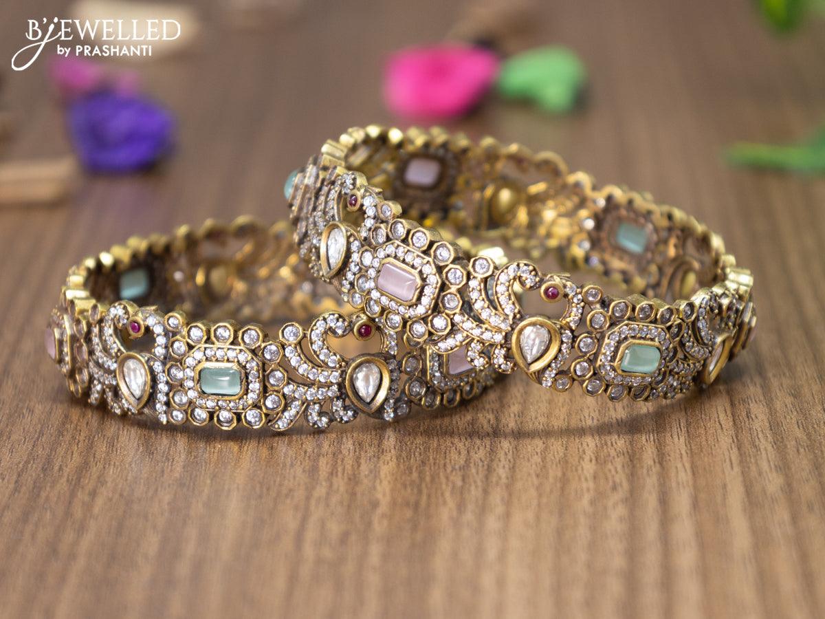 Victorian bangles peacock design with mint green & baby pink and cz stones