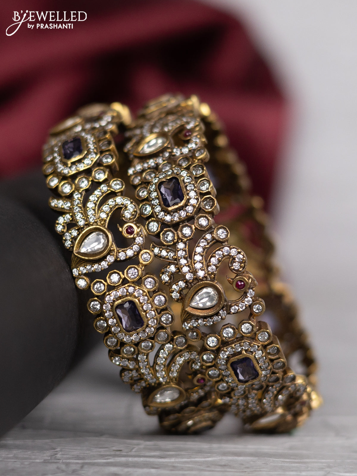 Victorian finish bangle peacock design with violet & kundan and cz stones