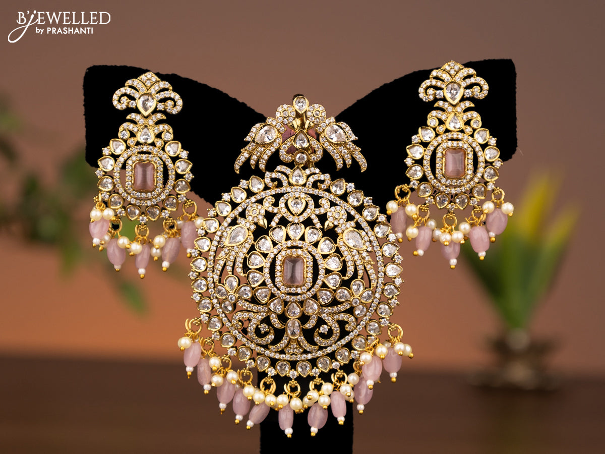 Victorian finish pendant set with baby pink & cz stones and beads hanging