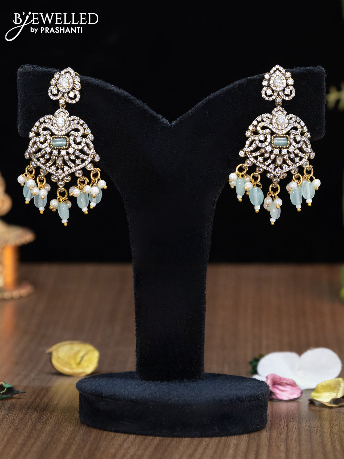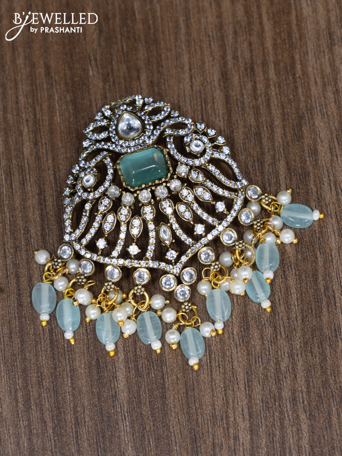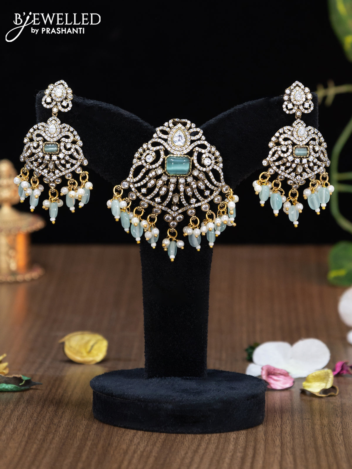 Victorian finish pendant set with mint green & cz stones and beads hangings