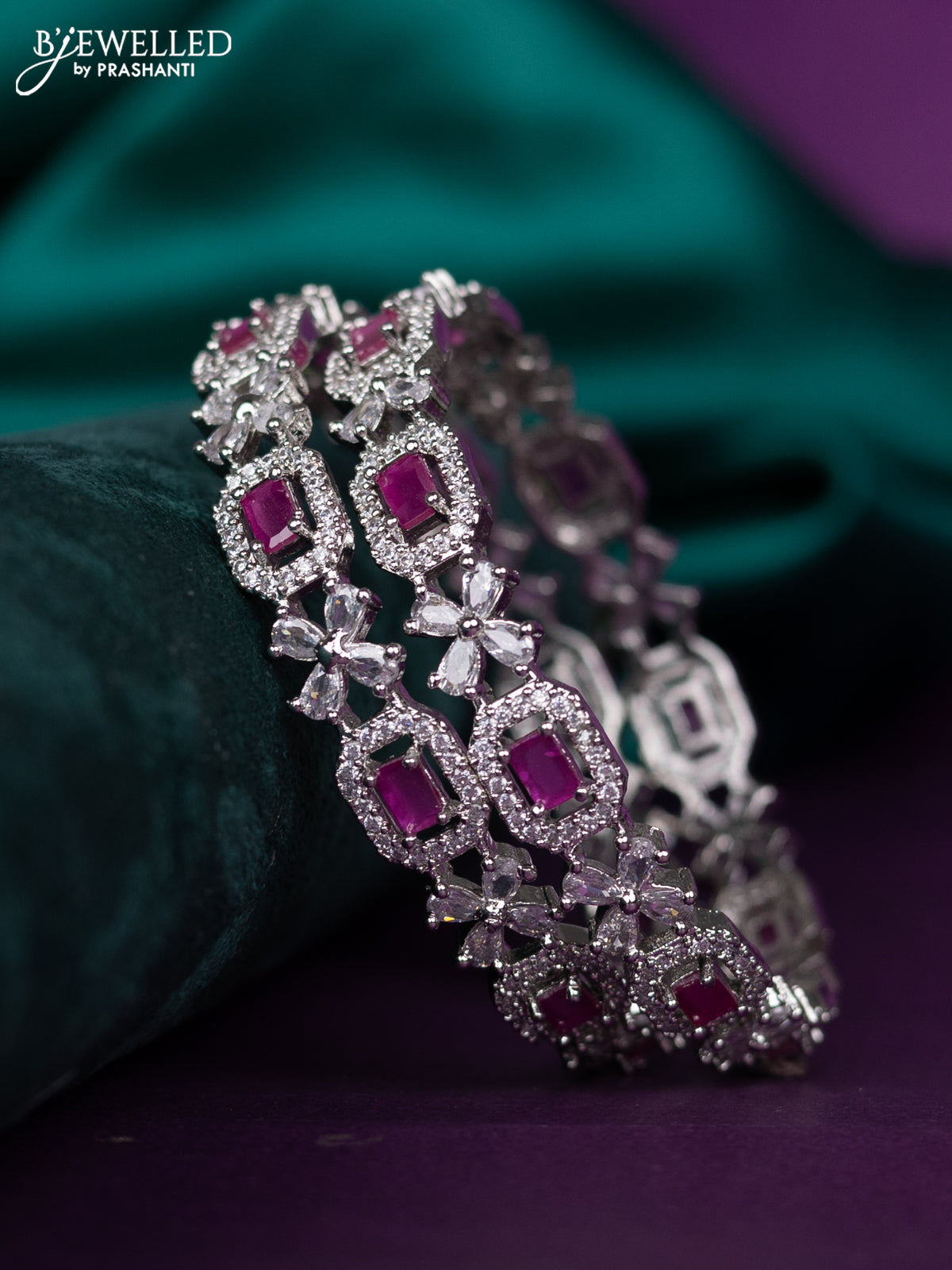 zircon bangle floral design with ruby and cz stones