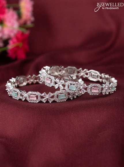 Zircon bangle with baby pink & mint green and cz stones