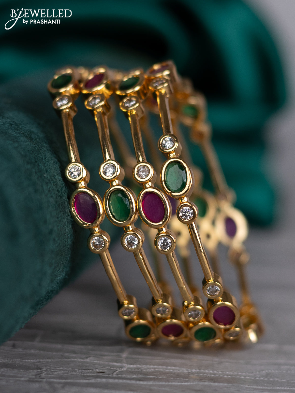 Zircon bangle with kemp and cz stones in gold finish