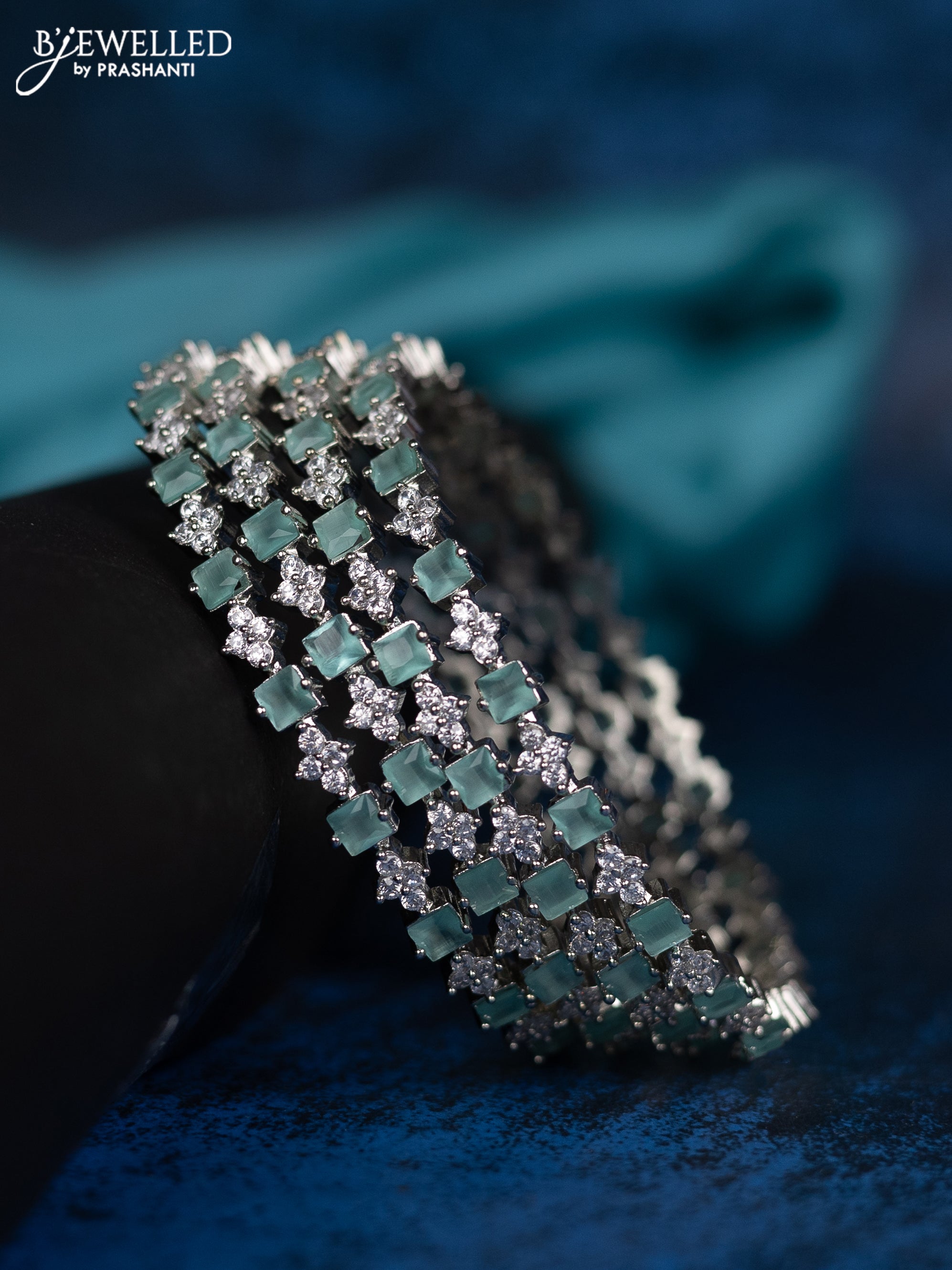 Zircon bangle with mint green and cz stones