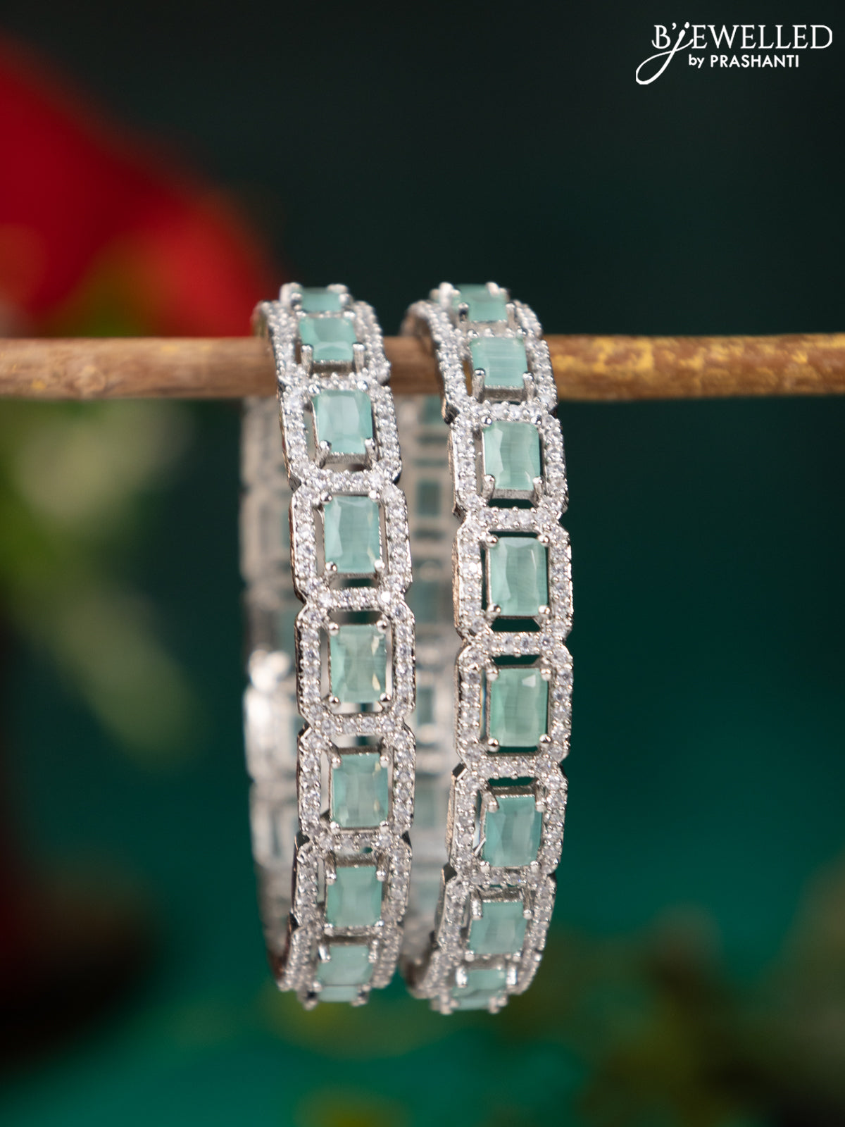 Zircon bangle with mint green and cz stones