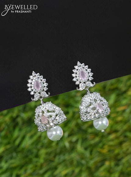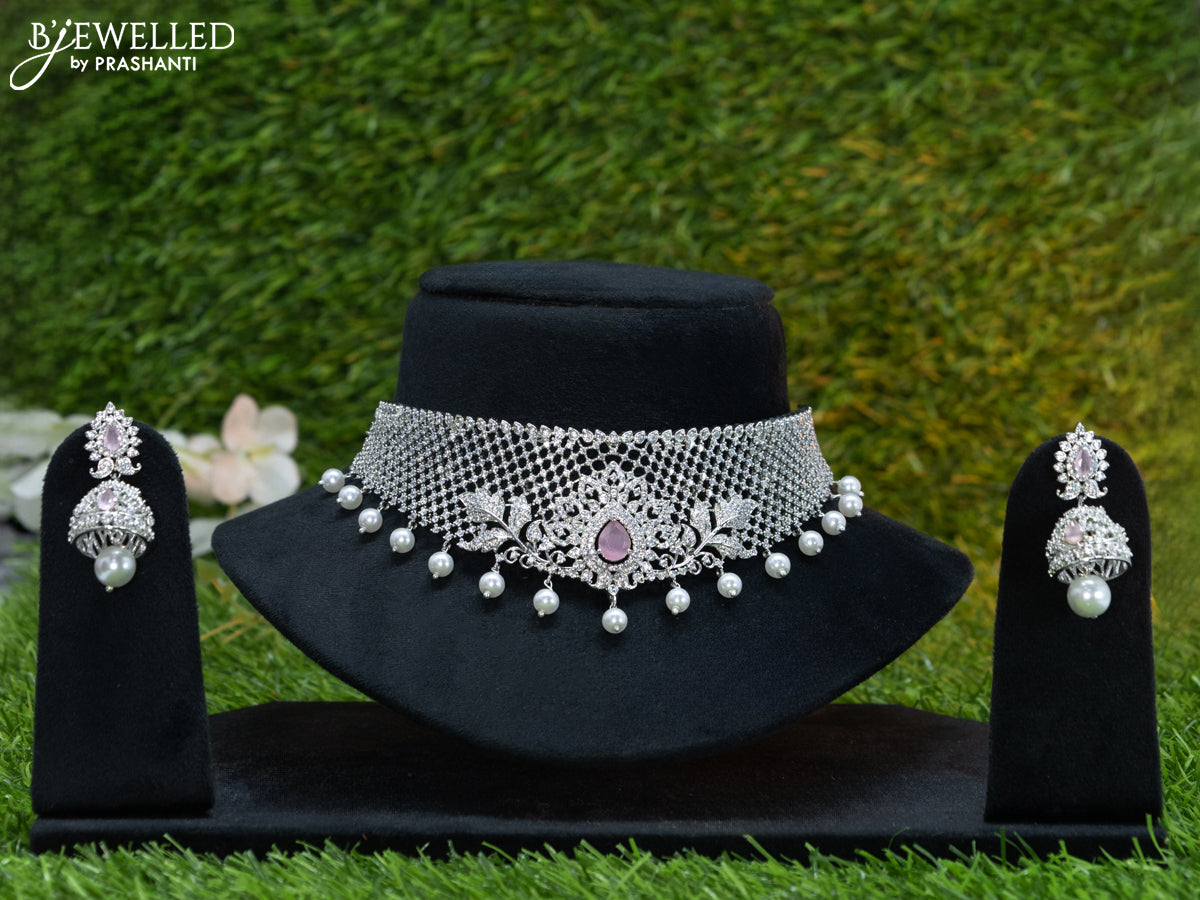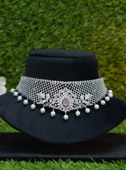 Zircon choker leaf design with baby pink & cz stones and pearl hangings