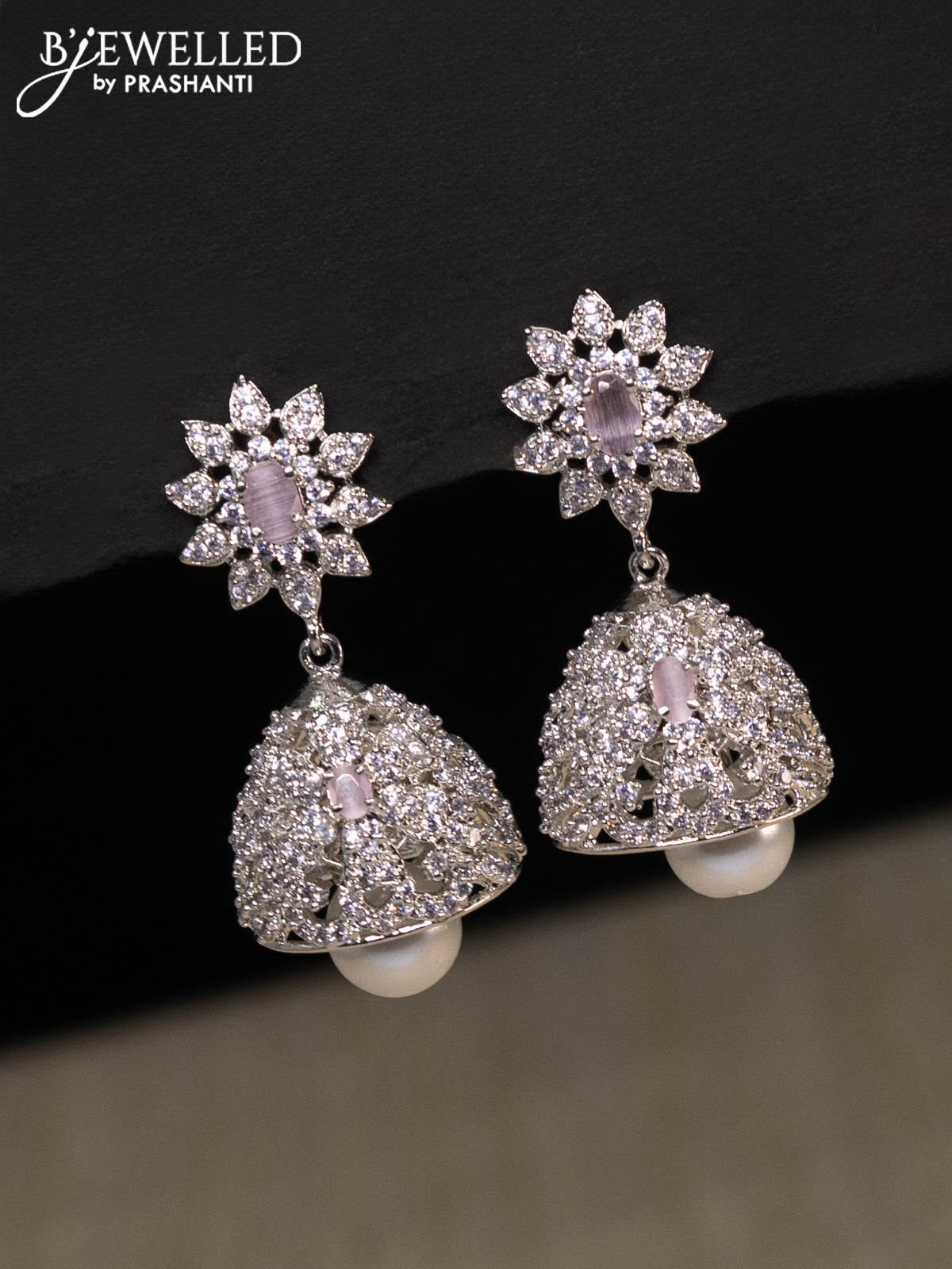Zircon choker with baby pink & cz stones and pearl hangings