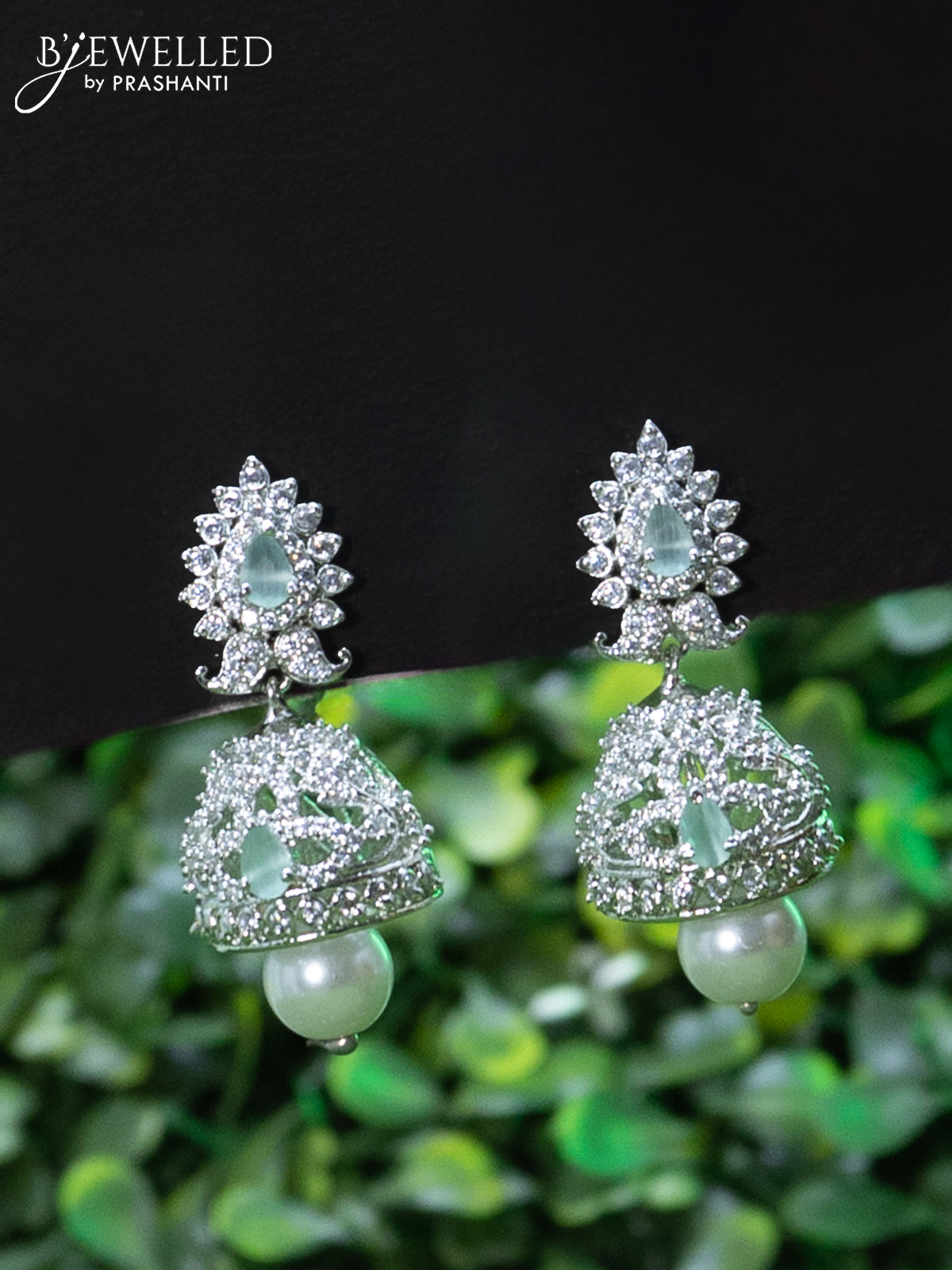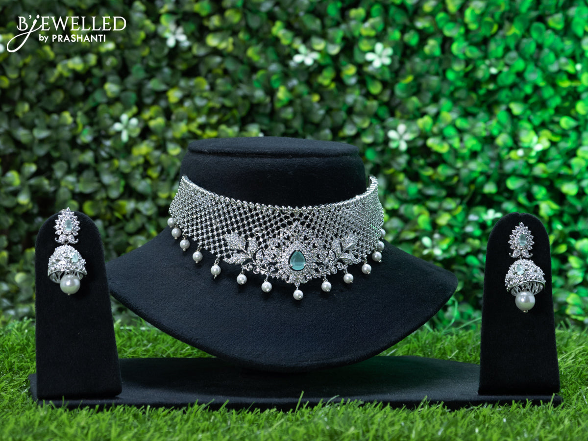 Zircon choker with mint green & cz stones and pearl hangings
