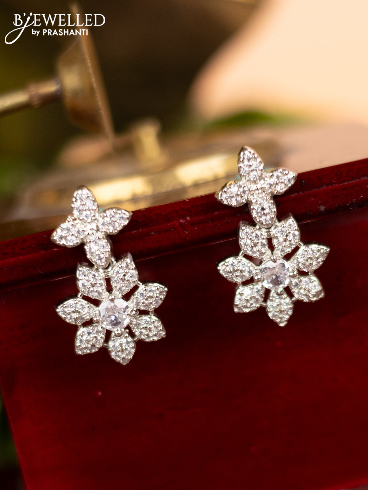 Zircon earring floral design with cz stone