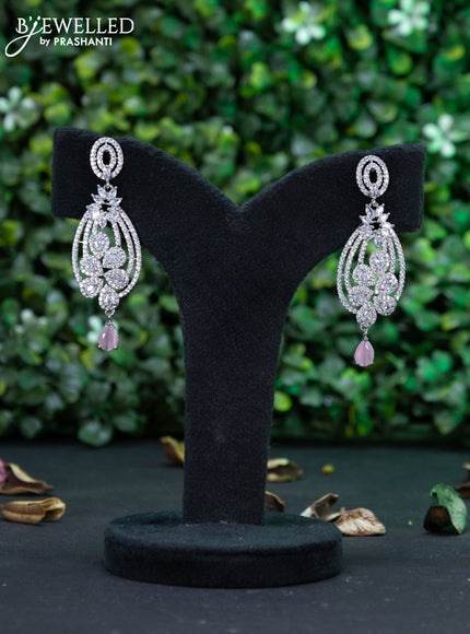 Zircon earring with baby pink & cz stones and hanging