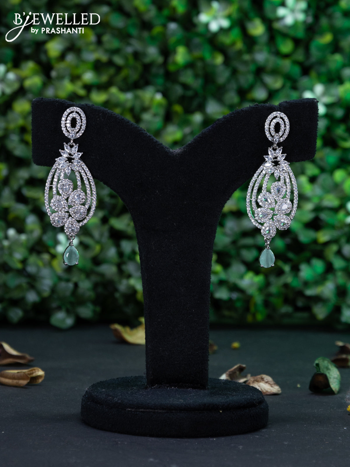 Zircon earring with mint green & cz stones and hanging