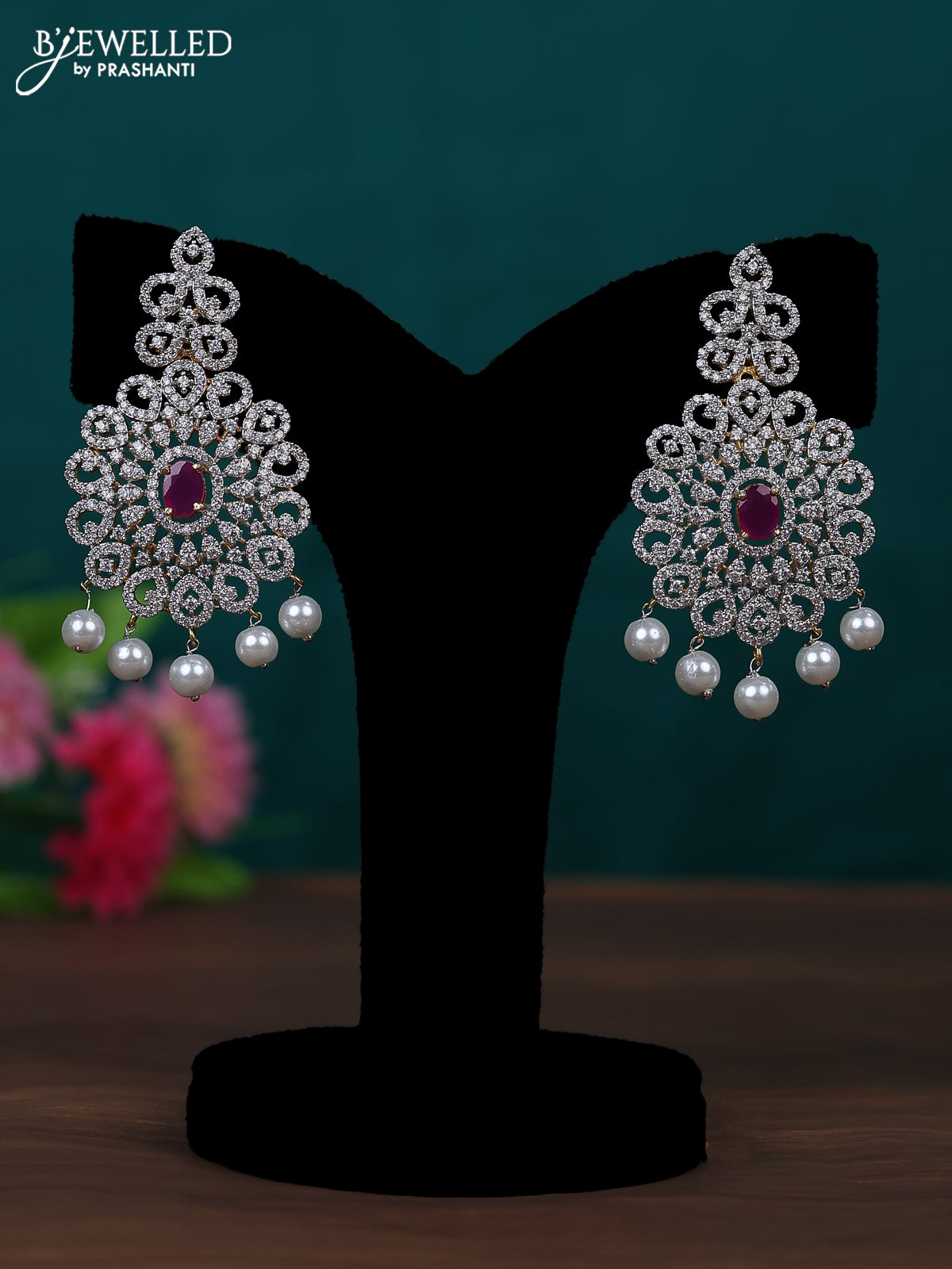 Zircon earring with ruby & cz stones and pearl hangings ingold finish