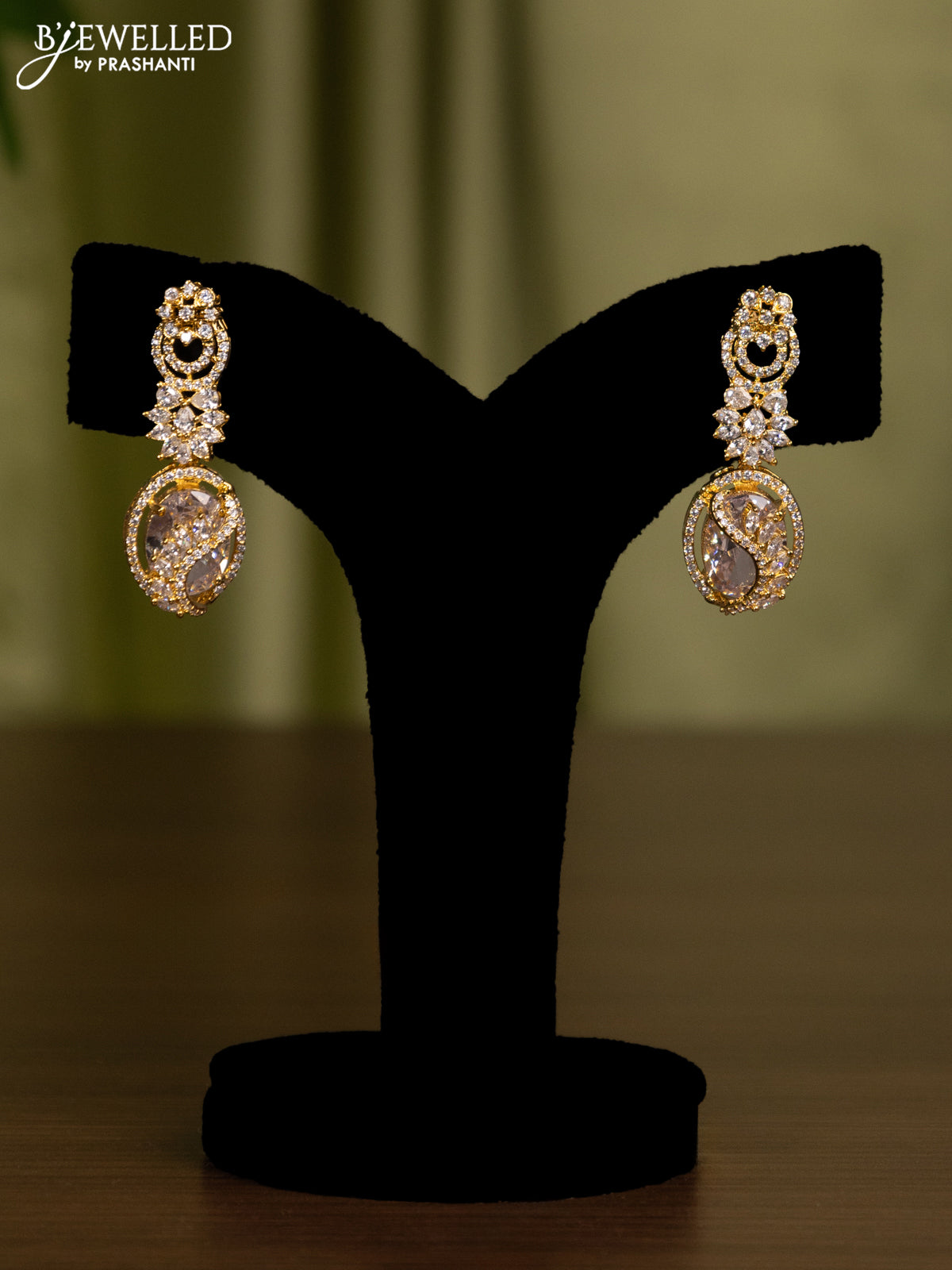 Zircon earrings with cz stones in gold finish