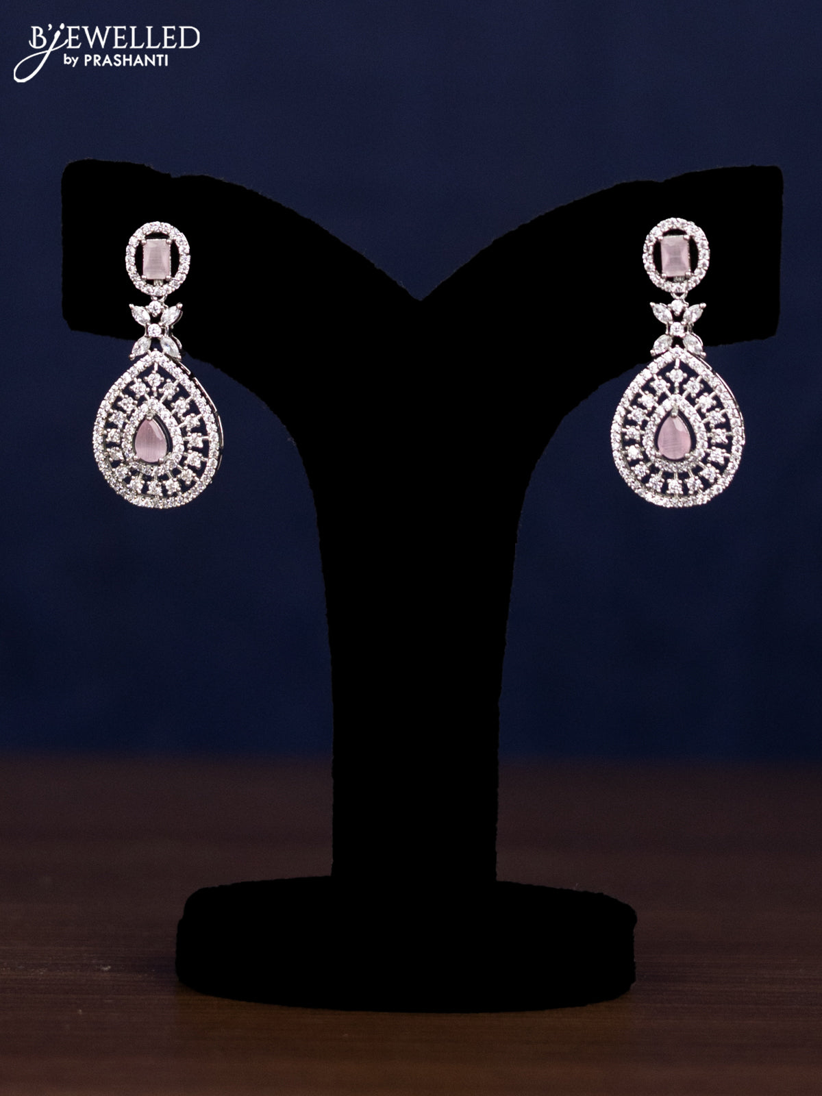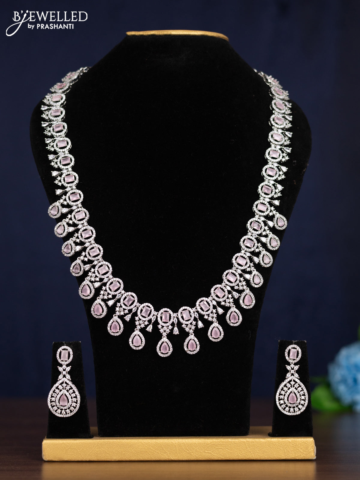 Zircon haaram with baby pink and cz stones