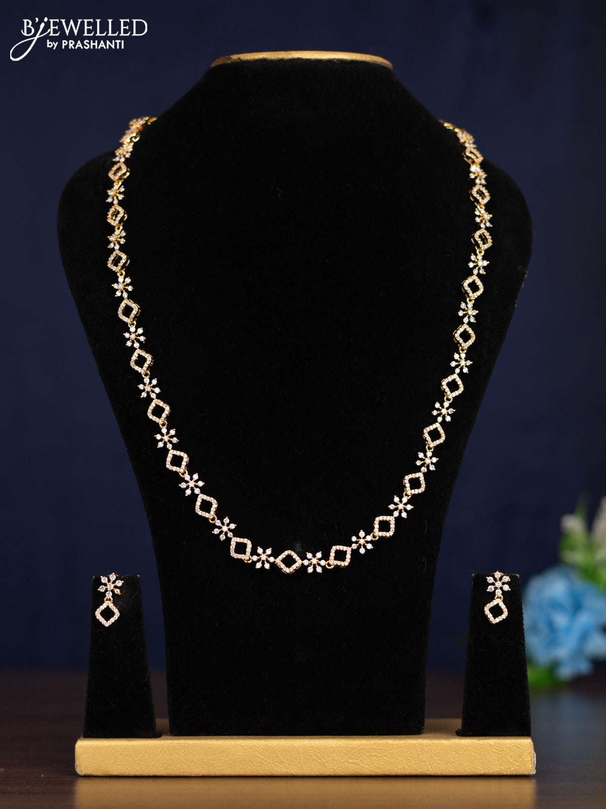 Zircon haaram with cz stones in gold finish