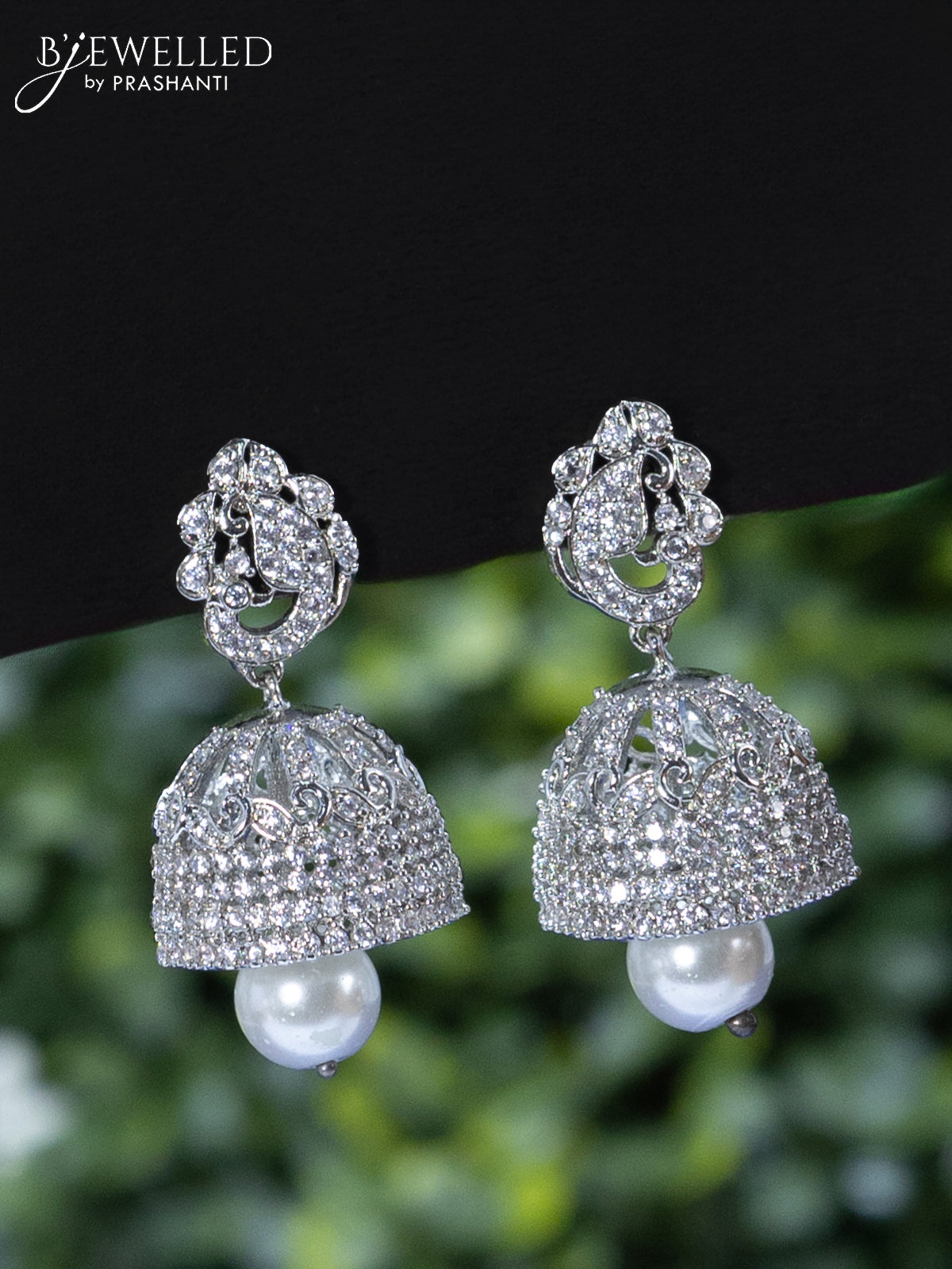 Zircon necklace peacock design with emerald & cz stones and pearl hangings