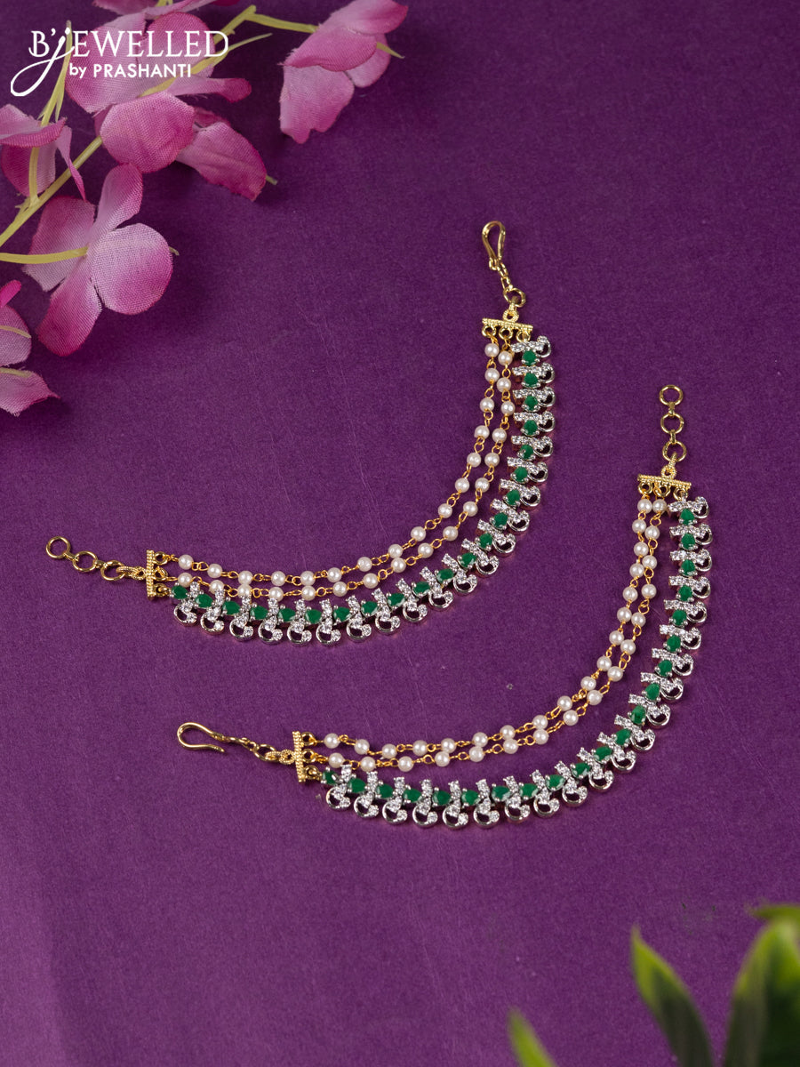 Zircon triple layer maatal with emerald and cz stones in gold finish